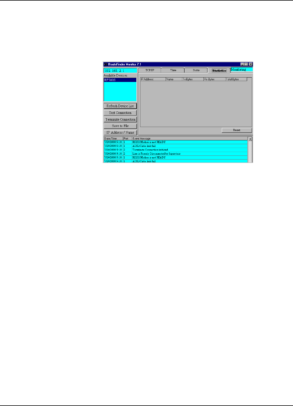 The Statistics tab indicates, by port, how many bytes of data have come in and out through the